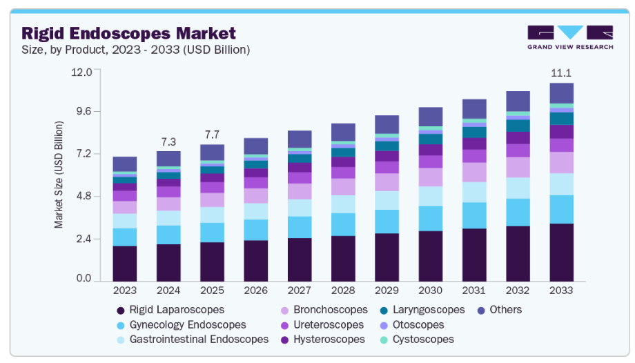 ■ 英語タイトル:Rigid Endoscopes Market Size, Share & Trends Analysis Report By Product, By Angle of View, By Product Dimension, By Product Length, By Surgical Center Size, By Surgical Center Location, By End-use, By Region, And Segment Forecasts, 2025 - 2033