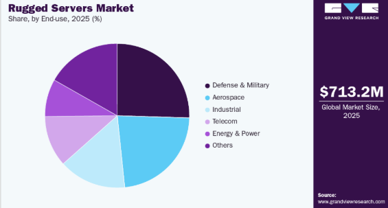 堅牢なラックマウントサーバーセグメントは、防衛、産業、通信分野におけるスペース制約や過酷な環境下での安全かつ高性能コンピューティングへの需要増加を背景に、2025年に最大の収益シェアを占めました。これらのサーバーはスケーラビリティ、集中処理、強化された耐久性を提供し、移動式指揮センター、フィールドデータセンター、エッジインフラへの導入に最適です。産業分野における5G、AI、IoT技術の採用が進むにつれ、衝撃、振動、極端な温度、粉塵に耐えられる信頼性の高いラックマウント型コンピューティングソリューションへの需要が継続的に増加しており、これが市場拡大をさらに促進している。この需要の高まりを受け、ベンダー各社は現代のミッションクリティカルなワークロード向けに設計された、高度にカスタマイズ可能な先進的なラックマウントソリューションの導入を加速させている。例えば2025年7月、RUGGED SCIENCEは米国メリーランド州で設計・組立されたカスタマイズ可能な1U~3Uシステム「NOMAD Rugged Rackmount Server Series」を発表。ミッション固有のニーズに応じた柔軟で高性能な堅牢サーバーオプションを提供し、制御性・信頼性・導入効率を強化した。