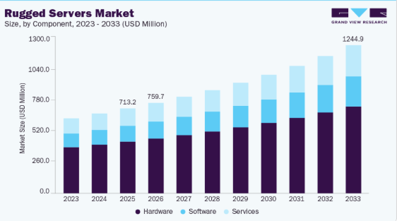 この需要は、5Gおよびエッジコンピューティングの拡大、スマートインフラへの投資増加、軍事・公共安全技術の展開拡大によってさらに加速されています。さらに、様々な産業におけるIoT、AI駆動型分析、自律システムの採用拡大は、極端な温度、衝撃、振動、粉塵環境下でも動作可能な信頼性と耐久性を備えたサーバーの必要性を高め、市場成長を加速させている。堅牢サーバー業界における最近の進歩には、高性能プロセッサの統合、強化されたデータストレージ機能、改善されたネットワーク機能が含まれる。例えば2025年9月、デルは米国でPowerEdge XR8720tを発表。性能向上・コスト削減・接続性強化によりクラウドRANやエッジ展開を強化する堅牢な単一サーバーソリューションを提供した。さらにNVMe(Non-Volatile Memory Express)ストレージ技術などの革新により、リアルタイムデータ分析を要するアプリケーションに不可欠な高速データアクセス・処理が実現されている。