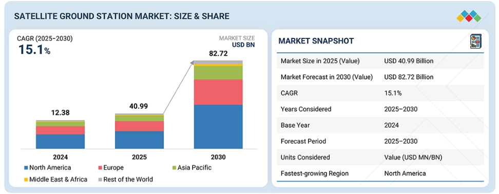 衛星地上局市場は、2025年の409億9,000万米ドルから、2030年までに827億2,000万米ドルに達すると予測されており、2025年から2030年にかけて年平均成長率(CAGR)15.1%で成長すると見込まれております。