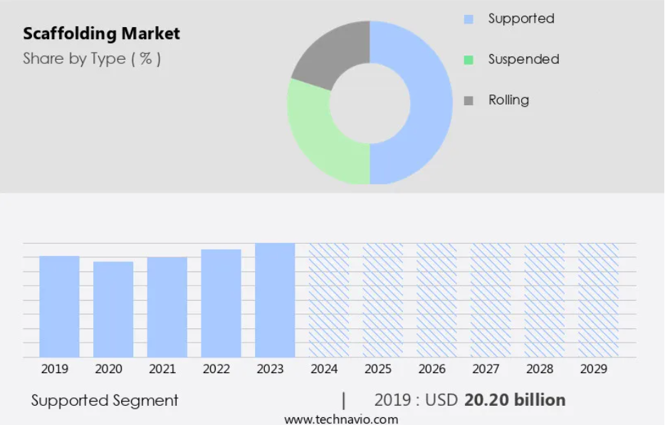 この市場は、インフラ開発および建設プロジェクトに欠かせない幅広い製品およびサービスで構成されています。これらの構造物は、機械・電気分野、住宅建設、高架鉄道建設など、さまざまな業界に高度なアクセスソリューションを提供しています。インフラ開発に関しては、政府プログラムが市場の成長を推進する上で重要な役割を果たしています。開発途上国における建設プロジェクトの民営化により、足場ソリューションの需要が増加しています。都市部では、住宅のエンドユーザーと建設支出が市場の拡大を後押ししています。足場業界には、支持足場や吊り足場など、さまざまな種類があります。木製の板と金属製の支柱でできた従来の足場は、アルミニウムや鋼製の足場など、より高度で安全な代替品に徐々に置き換えられています。