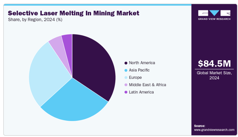 - 北米は鉱業分野における選択的レーザー溶解(SLM)の世界市場で最大シェア(34%超)を占め、主導的な地位にあります。