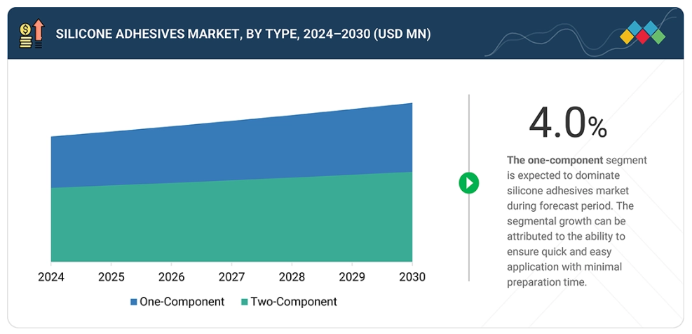 シリコーン接着剤市場は種類別では、一液型と二液型に分類されます。一液型シリコーン接着剤は、すぐに使用可能で混合が不要な特性から、迅速かつ容易な施工と最小限の準備時間を確保できるため、予測期間中はより大きなシェアを占めると見込まれます。