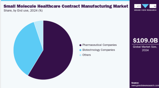 バイオテクノロジー企業セグメントは、自社製造能力を持たない新規低分子治療薬を開発する中小バイオテック企業の増加により、予測期間中に最も高いCAGRで成長すると見込まれる。これらの企業は、効率的な生産拡大、高品質基準の維持、規制要件の遵守のために受託製造業者への依存度を高めている。