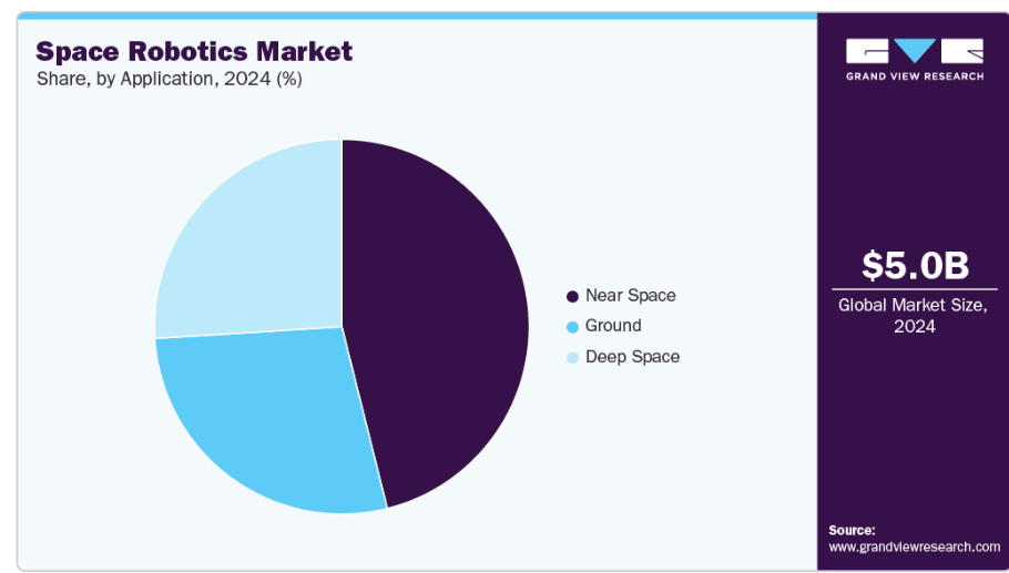 2024年には、低軌道における衛星サービス、宇宙インフラ組立、宇宙デブリ除去活動への投資増加により、ニアスペースセグメントが最大の市場シェアを占めました。政府および民間航空宇宙企業は、モジュール式自律ロボットシステムの開発を優先しています。宇宙の商業化進展と衛星の拡大により、ミッション効率と安全性を高めるロボットソリューションへの需要が増加しています。宇宙機関や商業オペレーターが持続可能な軌道上運用に注力し続ける中、ニアスペース分野は市場の急速な拡大を支える重要な役割を担い続けております。