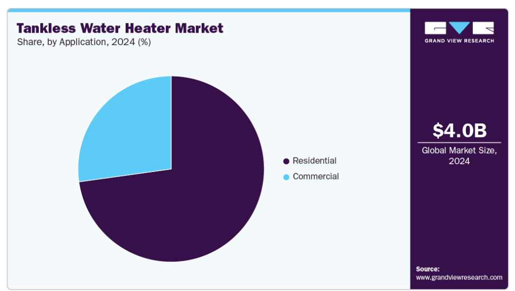 • 製品別では、電気式タンクレス給湯器市場が2024年に69.2%と最大のシェアを占めました。