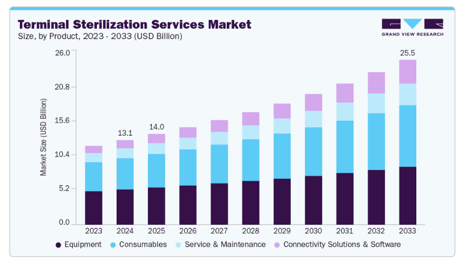 これは重大な公衆衛生上の懸念を反映しており、病院や医療システムに課せられる財政的・運営上の負担を浮き彫りにしています。このため、医療提供者や規制当局は、製品の無菌性を確保し感染リスクを低減するため、最終滅菌サービスプロセスへの重視を強めています。
