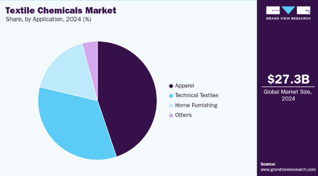 仕上げ剤製品セグメントは、外観、質感、機能性が向上したテキスタイルへの需要増加に牽引され、予測期間中に4.9%のCAGRで最も急速に成長するセグメントです。これらの薬剤は、柔らかさ、滑らかさ、しわ防止性、色保持性などの特性を向上させ、ファッションとテクニカルテキスタイルの両方の用途に対応すると同時に、持続可能で高性能な生地のトレンドを支えています。