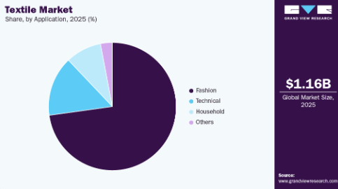 ファッション分野は繊維市場を支配し、2025年には72.7%という最大の収益シェアを占めました。これはカジュアル、フォーマル、季節ごとのカテゴリーを問わず、世界的なアパレル需要の高まりが牽引しています。ファストファッションの流行、著名人の支持、ソーシャルメディアの影響により、衣類の消費サイクルは大幅に加速しています。ブランドは変化する消費者の嗜好に応えるため絶えず新コレクションを発表しており、繊維使用量の増加に寄与しています。実店舗とオンラインプラットフォームの両方を通じて手頃な価格の衣類が入手可能であることも、この優位性を支えています。さらに、新興市場におけるブランド品やデザイナーブランドの衣類の台頭が需要をさらに押し上げています。ファッションと持続可能性、デジタルカスタマイズの融合は、その主導的な市場地位を強化し続けています。