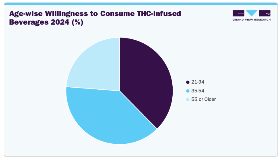 2024年、THC配合飲料への関心は全年齢層に広がっており、特に35~54歳の成人層(消費者の38.7%を占める)に最も高い消費意欲が見られます。これに続く21~34歳の若年層は37.7%で、ミレニアル世代と年長のZ世代における強い需要が浮き彫りとなっています。特筆すべきは、55歳以上の回答者の23.6%もTHC飲料を試す意思を示しており、高齢層における受容性の拡大を示唆しています。この年齢分布は、健康増進、リラクゼーション、アルコール代替への関心により、世代を超えてTHC飲料の魅力が広がっていることを反映しています。