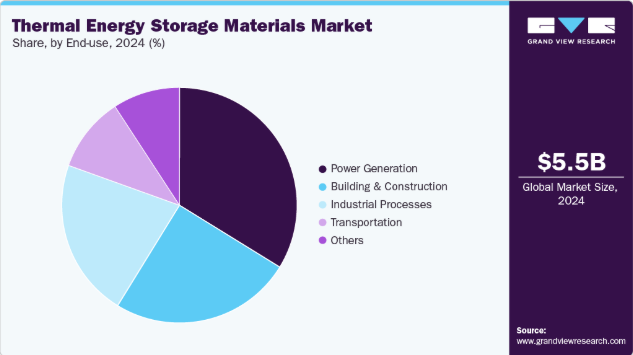 - 用途別では、発電セグメントが2024年に33.8%の最高収益シェアで熱エネルギー貯蔵材料産業をリードした。