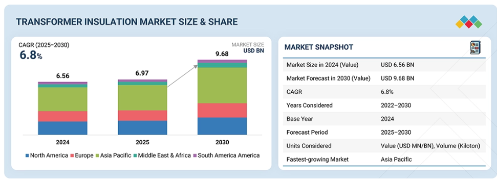 変圧器絶縁材市場は著しい成長を遂げております。都市化、産業成長、その他の電気機器による電力消費量の増加が、変圧器絶縁システムへの需要を拡大しております。中国やインドなどの新興経済国においても、電力アクセス拡大に向けたインフラへの大規模投資や電力網の改善が、変圧器絶縁材市場の成長を促進しております。