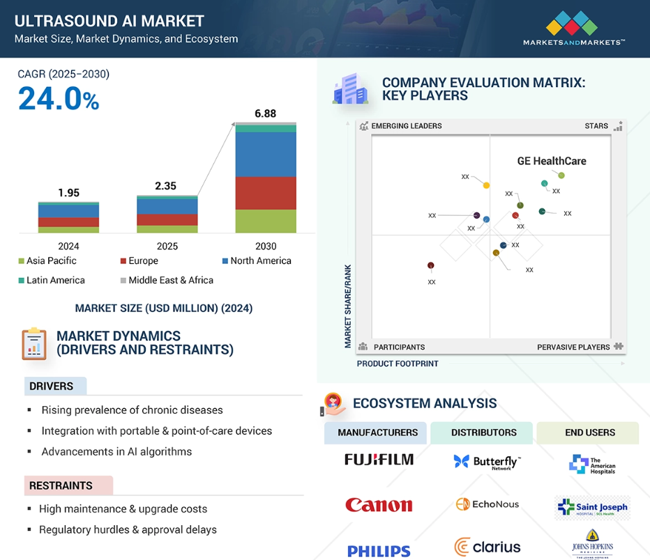 慢性疾患の増加に伴う負担の増大により、迅速で正確かつ非侵襲的な診断ソリューションへの需要が高まっていることから、AI超音波市場の成長は加速しています。
