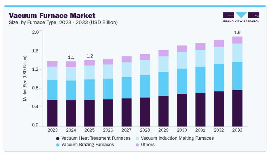 真空炉市場は、航空宇宙、自動車、電子分野における先端材料の需要拡大に牽引されています。これらの分野では、製品品質に精密な熱処理が不可欠です。自動化、遠隔監視、省エネルギー設計などの技術革新により、運用効率と持続可能性が向上しています。さらに、排出ガス、エネルギー使用、安全性に関する厳格な規制基準が、コンプライアンス確保と競争優位性獲得のための先進炉技術導入を促進しています。