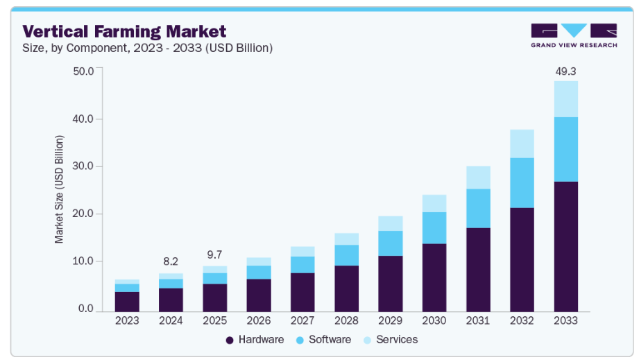 ■ 英語タイトル:Vertical Farming Market Size, Share & Trends Analysis Report By Component (Hardware, Software, Services), By Growing Mechanism (Aeroponics, Hydroponics, Aquaponics), By Crop Category, By Structure, By Region, And Segment Forecasts, 2025 - 2033