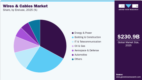 エネルギー・電力セグメントは2025年に最大の市場収益シェアを占めた。送電損失を回避するため、旧式送電線を高圧/超高圧線路へ移行するなどの技術的アップグレードが電力送配電エコシステムで実施されている。例えば2024年12月、NKTはABBディストリビューション・ソリューションズと提携し、スウェーデン・カールスクローナにある高圧海底電力ケーブル工場の拡張に必要な電気インフラを提供。これにより同施設は、合計20GWの洋上風力発電所を接続するのに十分なケーブルを生産可能となった。