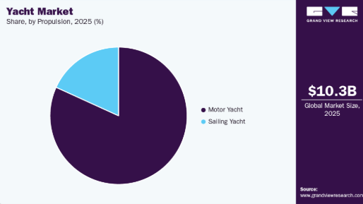 • 推進方式別では、モーターヨットセグメントが2025年に市場を支配した。