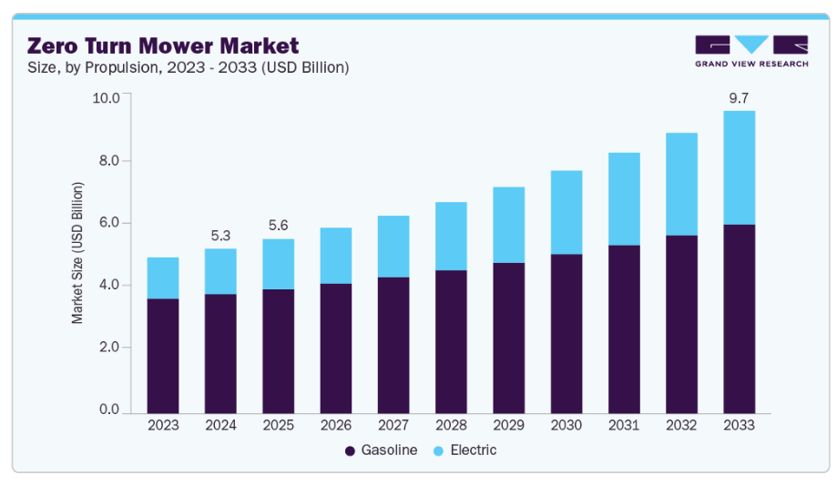 エンドユーザーが芝生管理や景観維持において効率性、速度、精度を重視する傾向が強まる中、世界的なゼロターン芝刈り機への需要は増加しています。従来の芝刈りトラクターとは異なり、ゼロターン芝刈り機はより速い刈り取り時間、鋭い機動性、複雑な刈り取りパターンを最小限の操作者負担で処理する能力を提供します。これらの利点により、ZTM(ゼロターン芝刈り機)は業務効率の向上と作業完了時間の短縮を目指す商業用造園業者、自治体、施設管理者、大規模不動産所有者にとって好まれるソリューションとなっています。